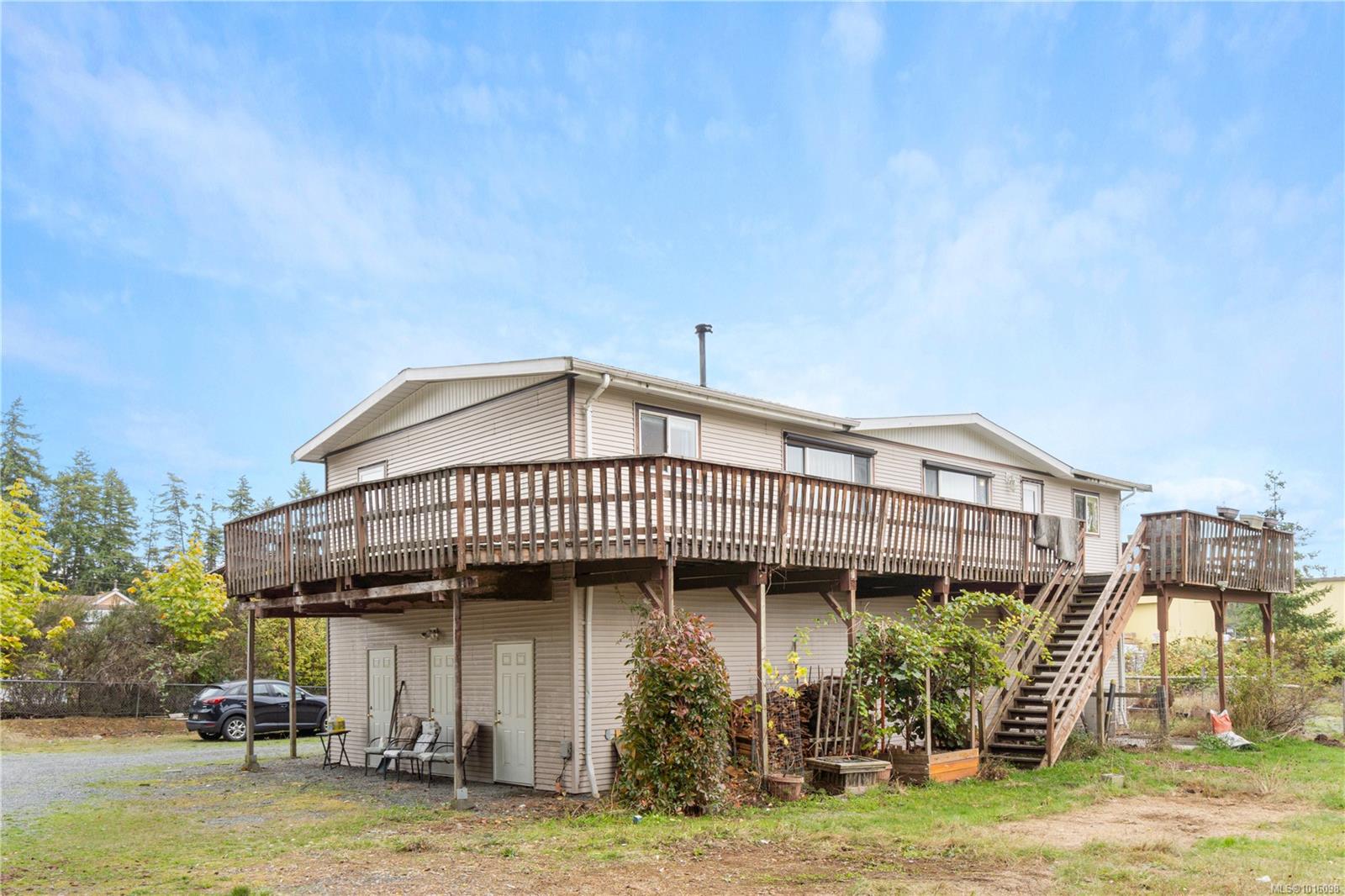 Affordable opportunity in Errington! Unlock the potential of this .85-acre property in the heart of Errington! With Mount Arrowsmith views and ample space for RVs, boats, or future ideas, this versatile property is ideal for investors or those with vision. The upper level features a 3-bedroom, 2-bath double-wide mobile built on seacans and a cement foundation with vinyl siding, metal roof, and vinyl windows. Upstairs offers two full baths, including an ensuite with separate shower and large tub. Below, a self-contained unauthorized suite with its own driveway off Christian Street provides flexibility for income or extended family and unparalleled storage space. A drilled well, septic system, & wood-burning stove add comfort & practicality. While updates are needed, the opportunity is clear—two living spaces, income potential, and room for a fenced garden with fruit trees & vines. Peaceful rural setting near schools, daycare, trails, & the Errington Farmers Market, just minutes to Parksville’s beaches and shopping.