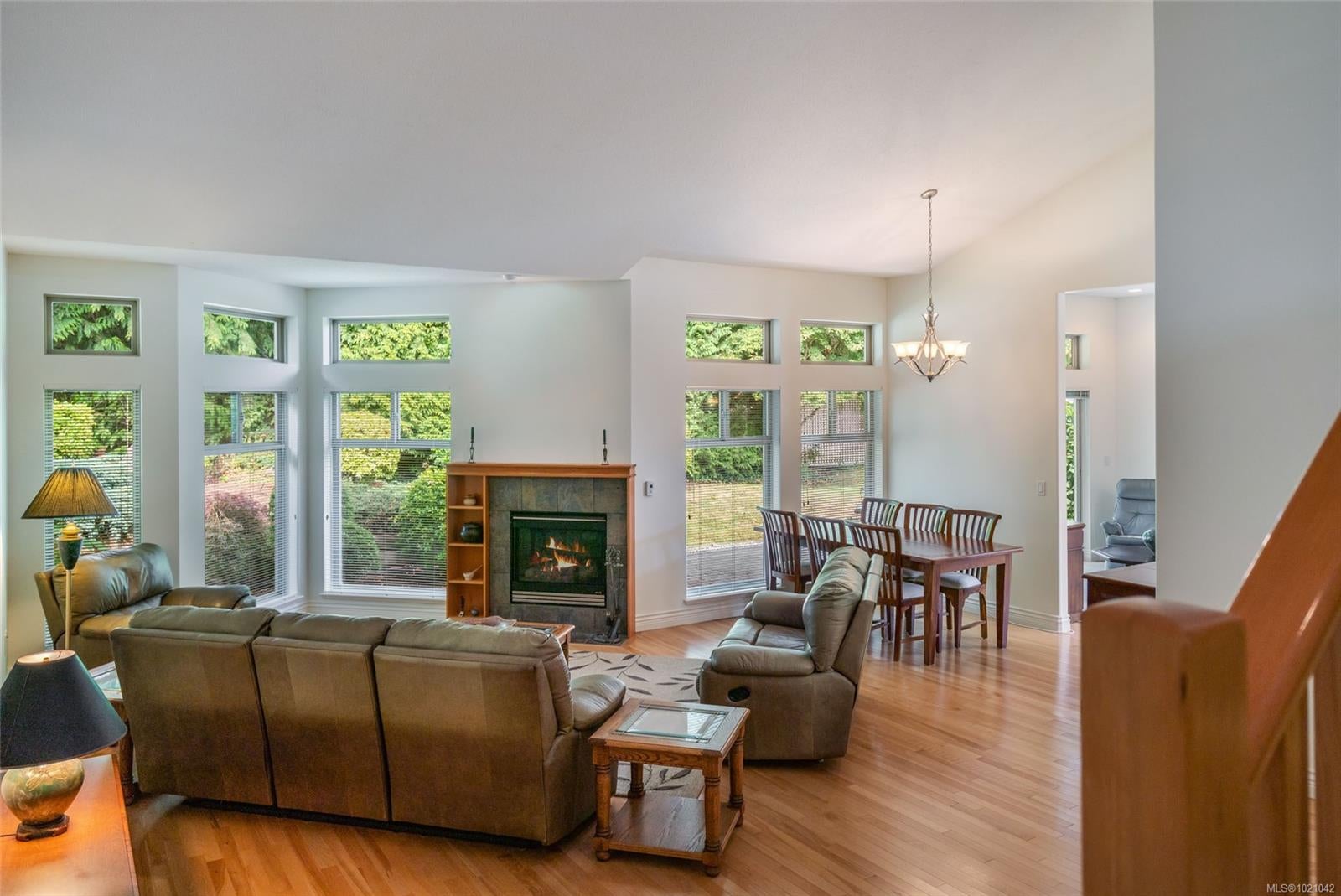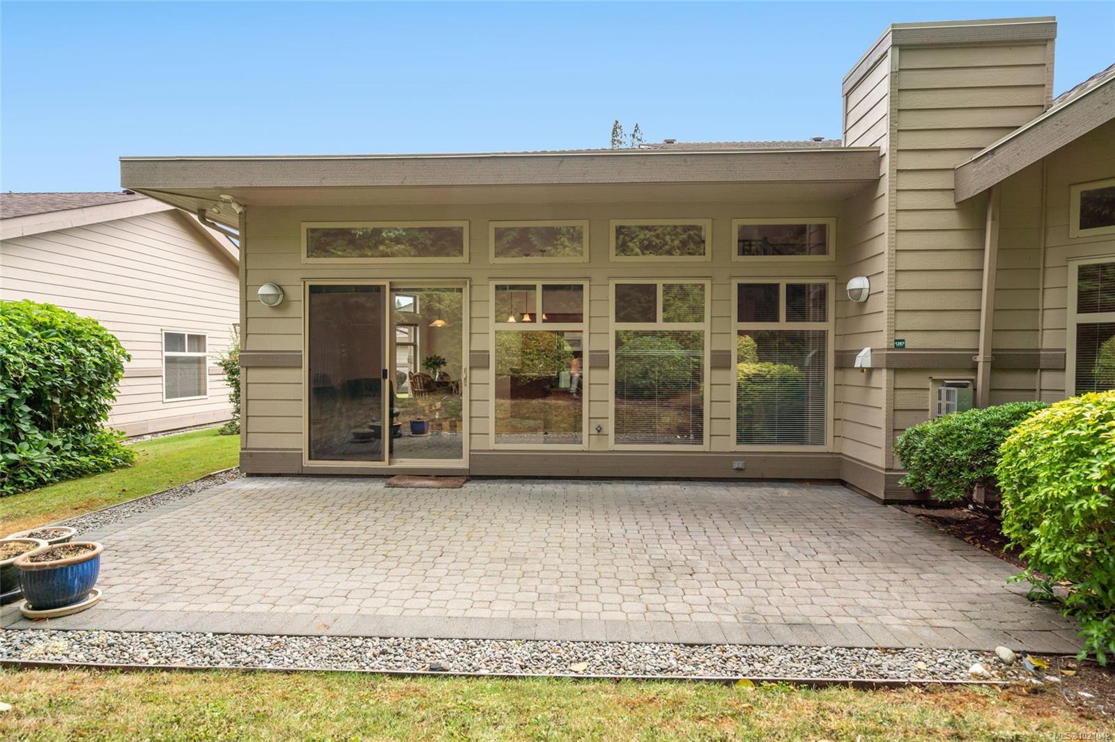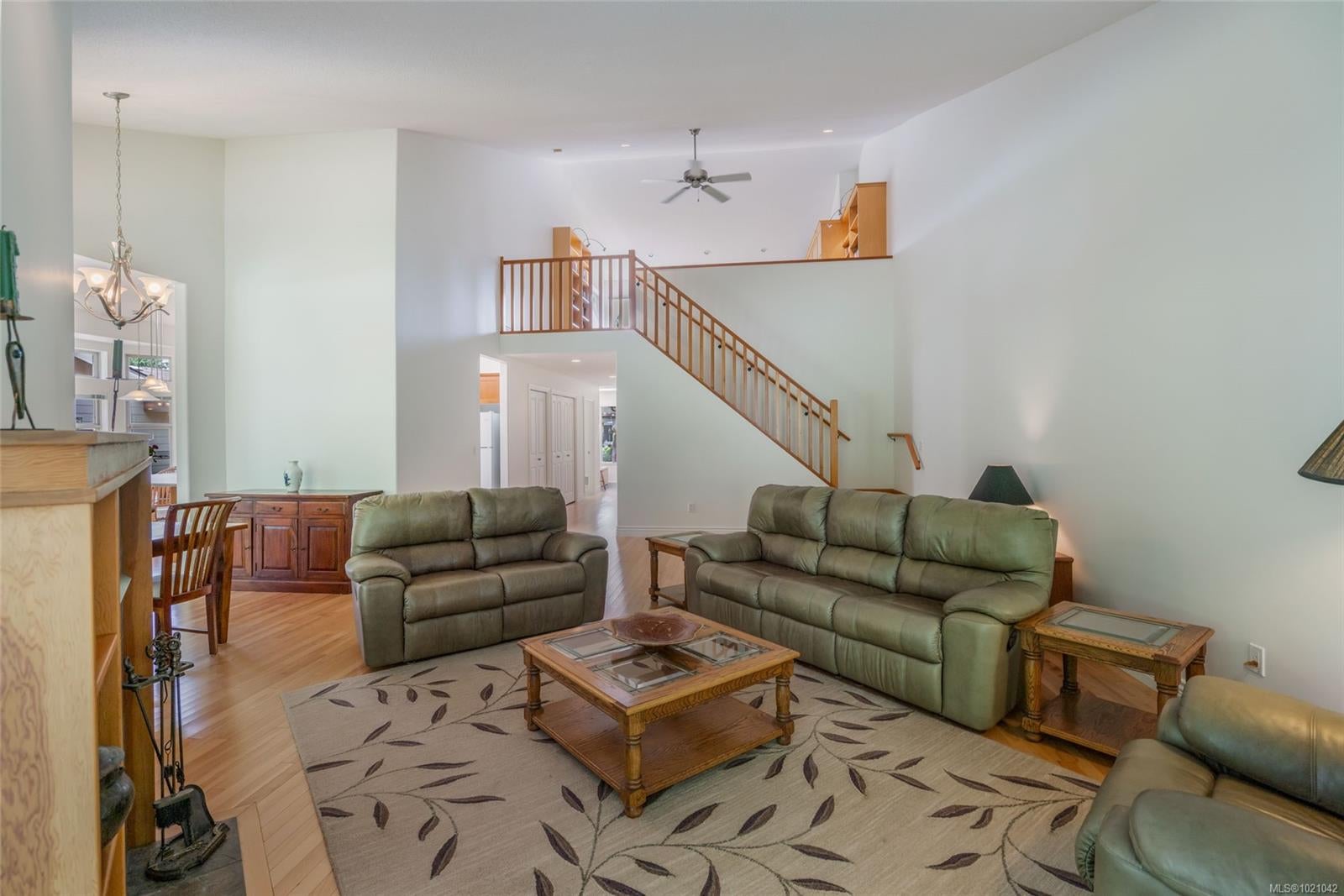 Discover bright, easy living in this spacious and well-maintained 2-bedroom, 2-bath townhome, perfectly suited to the Vancouver Island lifestyle. Hardwood floors, tiled entry, vaulted ceilings and skylights create an airy, light-filled feel. The open living and dining area features a cozy fireplace and space to showcase your art. Maple kitchen cabinetry and a family room lead to a large, private patio and garden area backing onto Morningstar Golf Course with gas BBQ hookup. The versatile loft includes a built-in wall unit and Murphy bed. A generous primary suite offers a 5-piece ensuite with soaker tub, walk-in shower, and walk-in closet. Large laundry room with sink and storage, second bedroom with adjacent bath, double garage, updated furnace (2019), hot water tank (2020), fresh paint, and cleaned carpets. No Poly-B plumbing. Close to amenities and ideal for relaxed Island living.