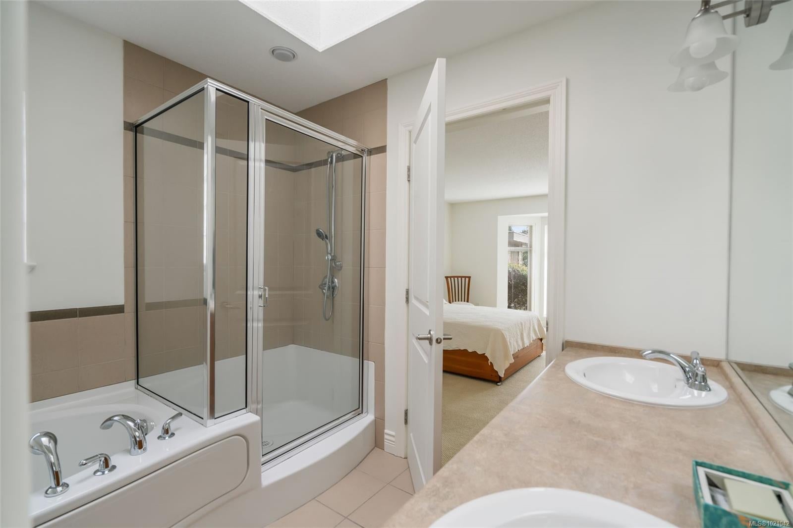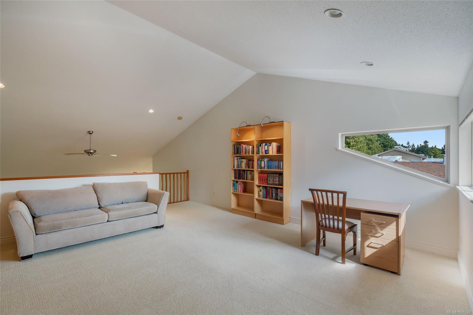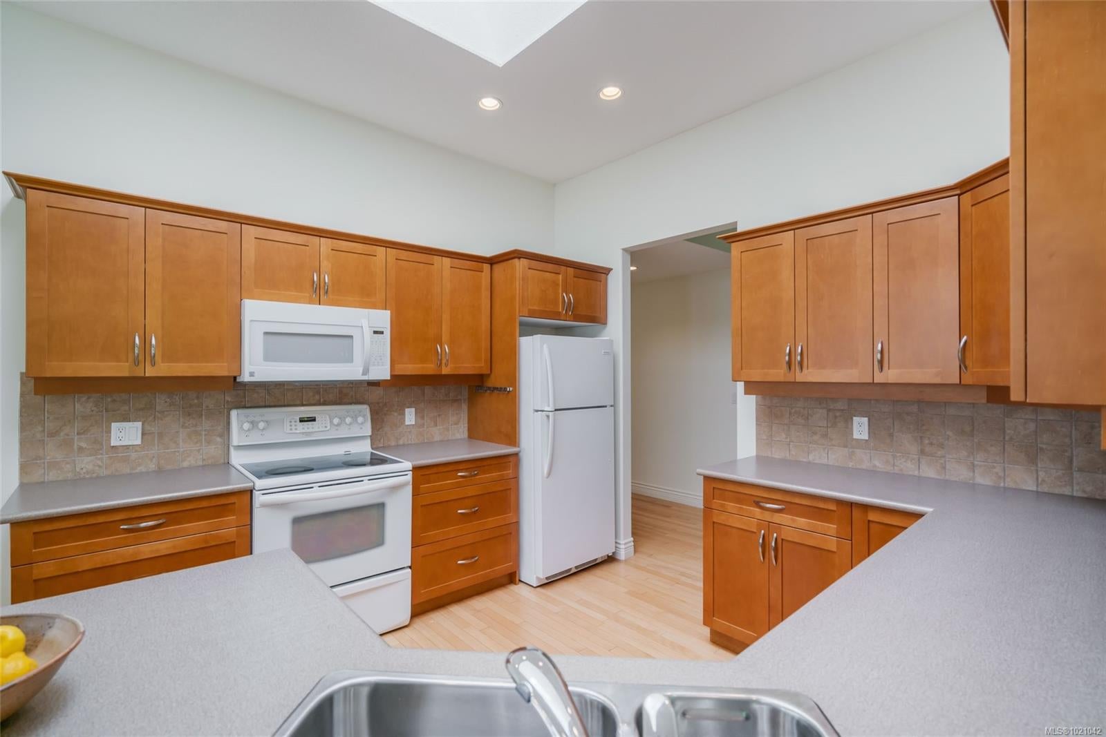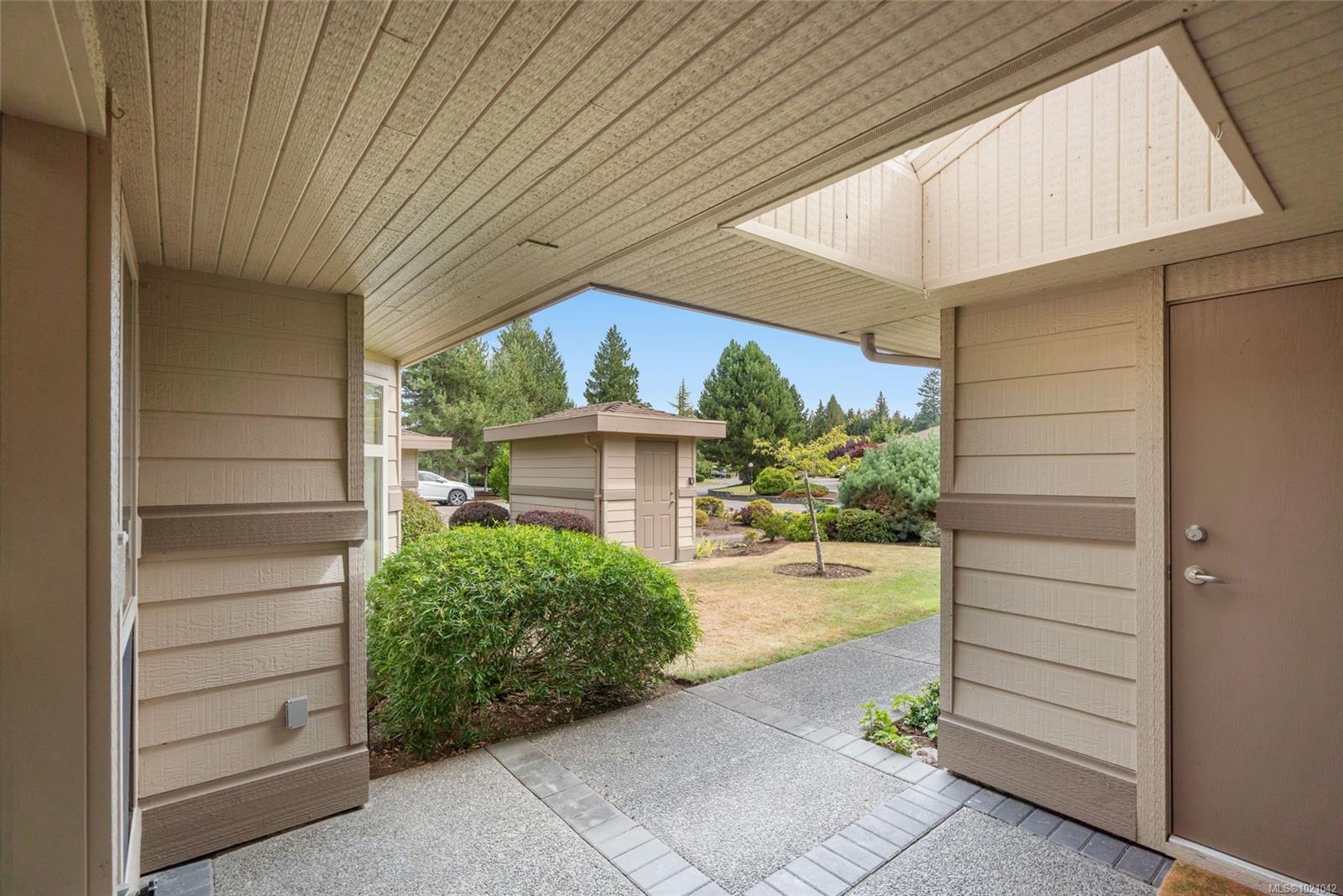 Discover bright, easy living in this spacious and well-maintained 2-bedroom, 2-bath townhome, perfectly suited to the Vancouver Island lifestyle. Hardwood floors, tiled entry, vaulted ceilings and skylights create an airy, light-filled feel. The open living and dining area features a cozy fireplace and space to showcase your art. Maple kitchen cabinetry and a family room lead to a large, private patio and garden area backing onto Morningstar Golf Course with gas BBQ hookup. The versatile loft includes a built-in wall unit and Murphy bed. A generous primary suite offers a 5-piece ensuite with soaker tub, walk-in shower, and walk-in closet. Large laundry room with sink and storage, second bedroom with adjacent bath, double garage, updated furnace (2019), hot water tank (2020), fresh paint, and cleaned carpets. No Poly-B plumbing. Close to amenities and ideal for relaxed Island living.
